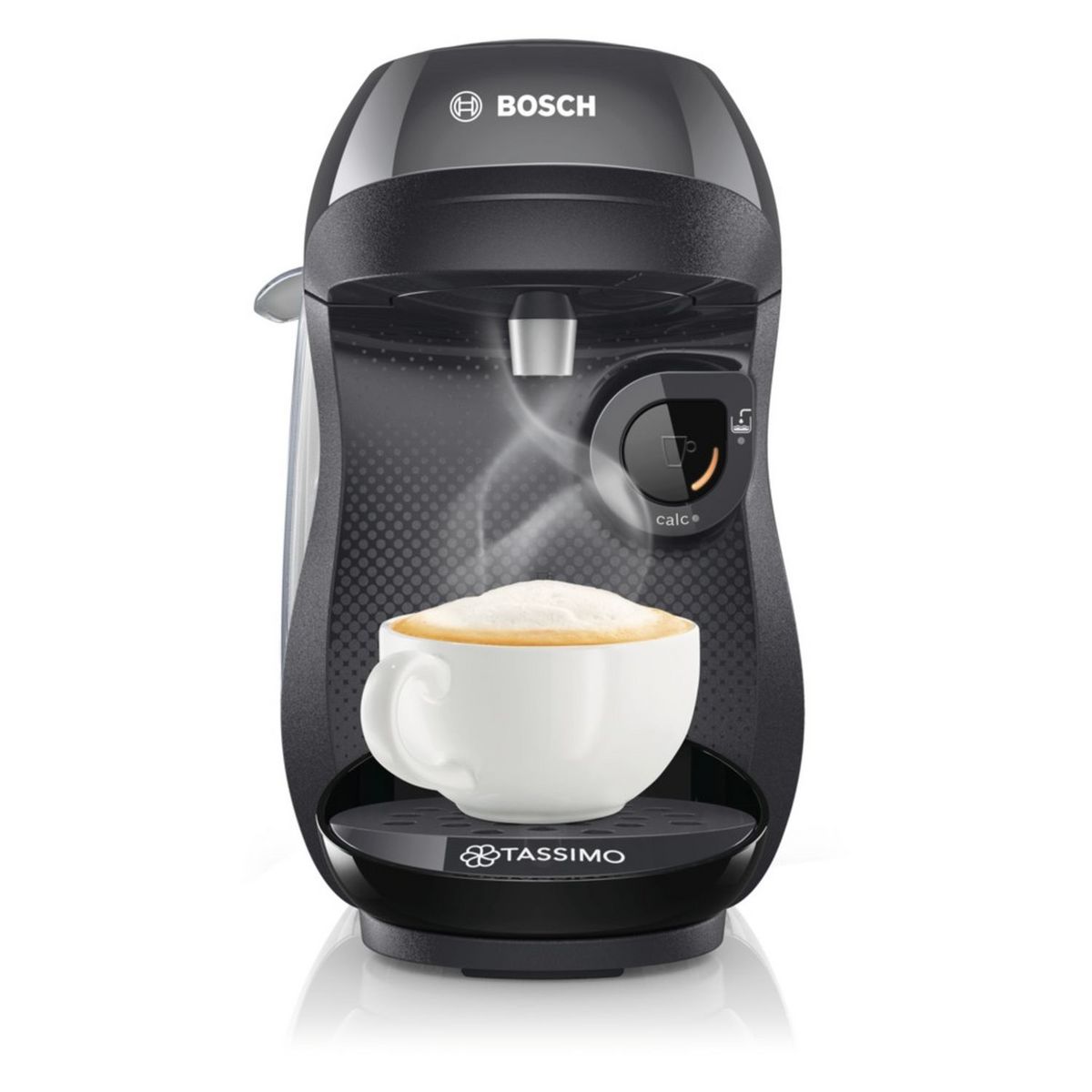 Adoptez la cafetière à dosette Tassimo TAS1002 noir de chez Bosch pour des cafés de qualité en toute simplicité!