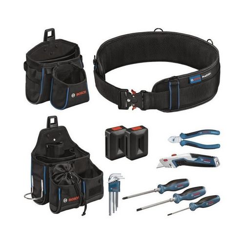 La ceinture et les sacoches ergonomiques permettent de toujours avoir ses outils a main essentiels a portée de main Deux sacoches porte-outils robustes et amovibles pour ranger rapidement ses outils Le systeme ProClick de Bosch Professional permet de fixer et retirer facilement les sacoches sans avoir a retirer la ceinture