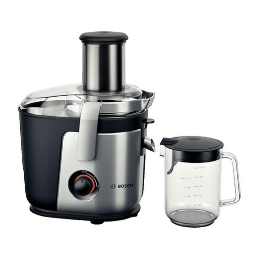 Découvrez la centrifugeuse Bosch MES4000, équipée d'un moteur puissant de 1000 W pour une extraction optimale des jus de fruits et légumes. Son design moderne en aluminium et acier inoxydable assure robustesse et élégance. Elle dispose d'une capacité de 1,5 L pour le jus et de 3 L pour la pulpe, ave
