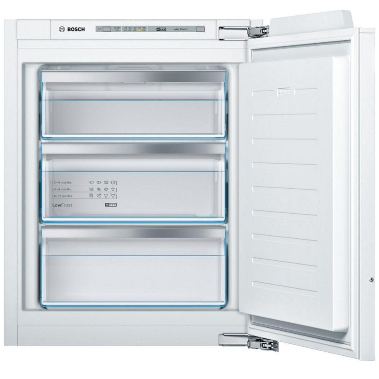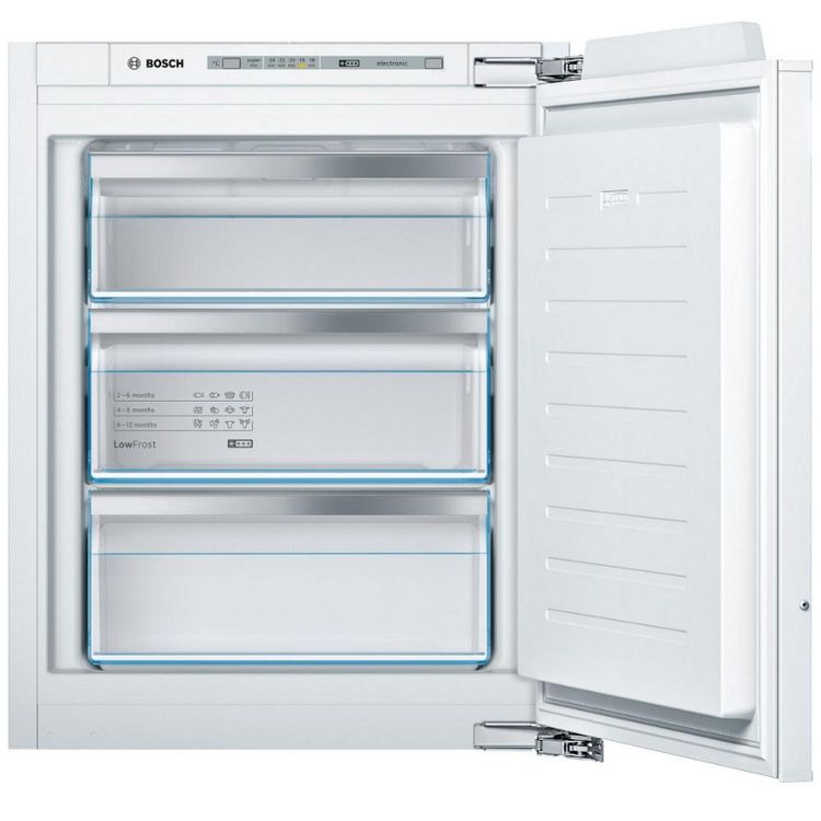 Bosch GIV11AFE0 Le congélateur intégrable Série 6 Bosch GIV11AFE0 avec 3 tiroirs transparents et sa fonction SuperFreezing : congèle les aliments encore plus rapidement. Super-congélation automatique : optimal pour congeler vos aliments encore plus vite, tout en préservant les aliments déjà présents