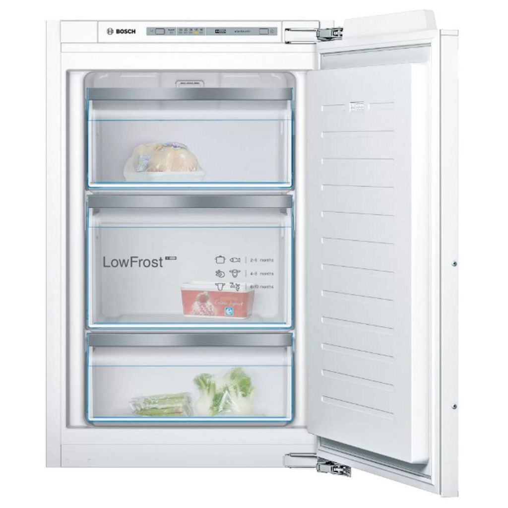 Bosch GIV21AFE0 Le congélateur intégrable Série 6 Bosch GIV21AFE0 avec 3 tiroirs transparents et sa fonction SuperFreezing : congèle les aliments encore plus rapidement. Super-congélation automatique : optimal pour congeler vos aliments encore plus vite, tout en préservant les aliments déjà présents