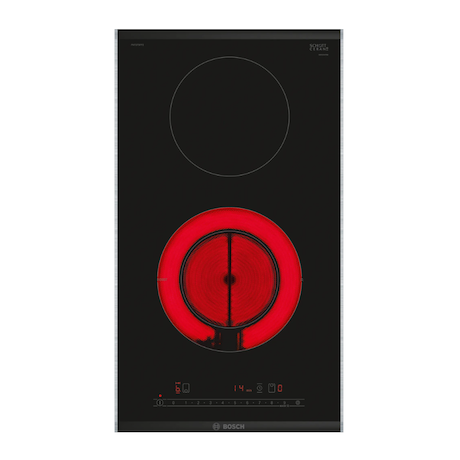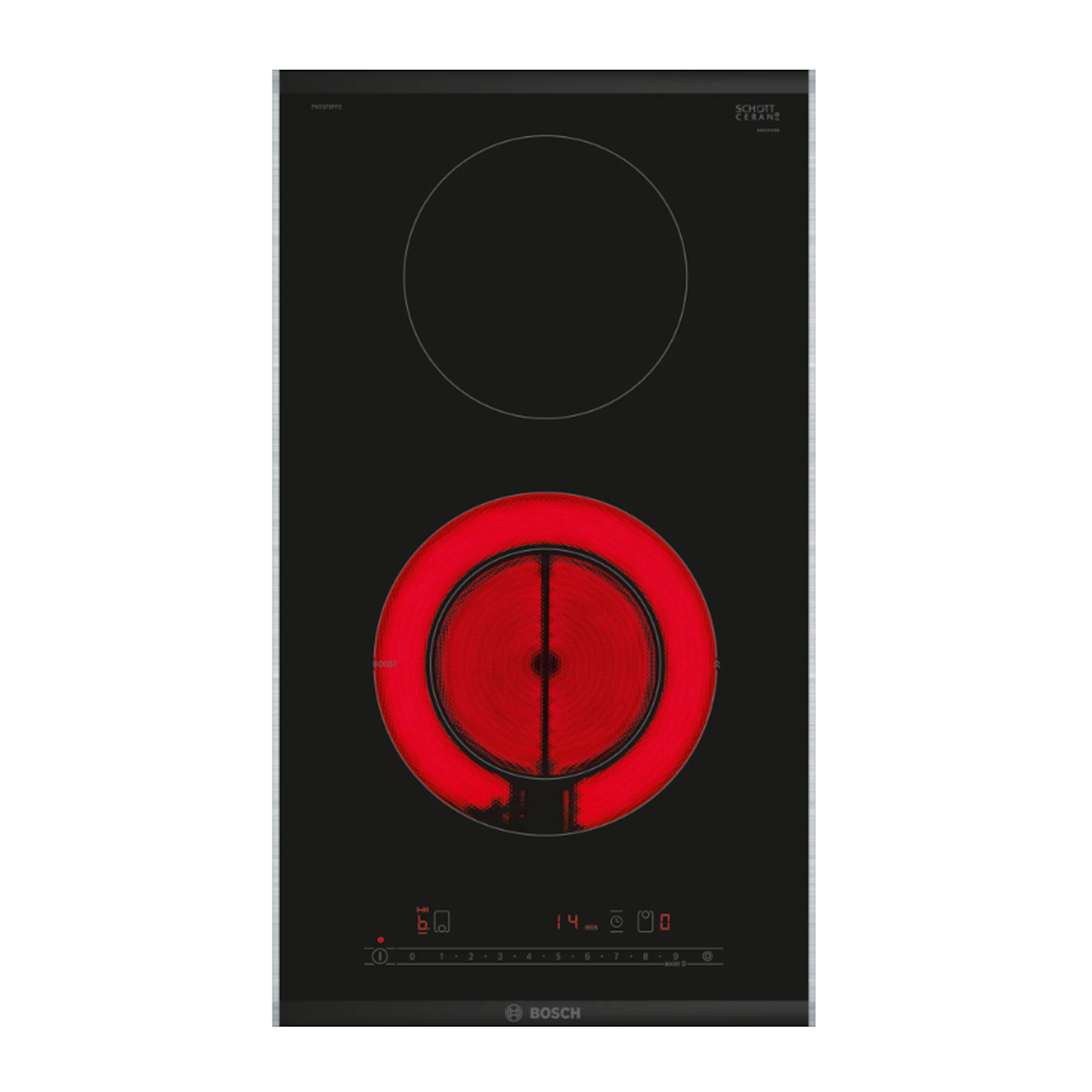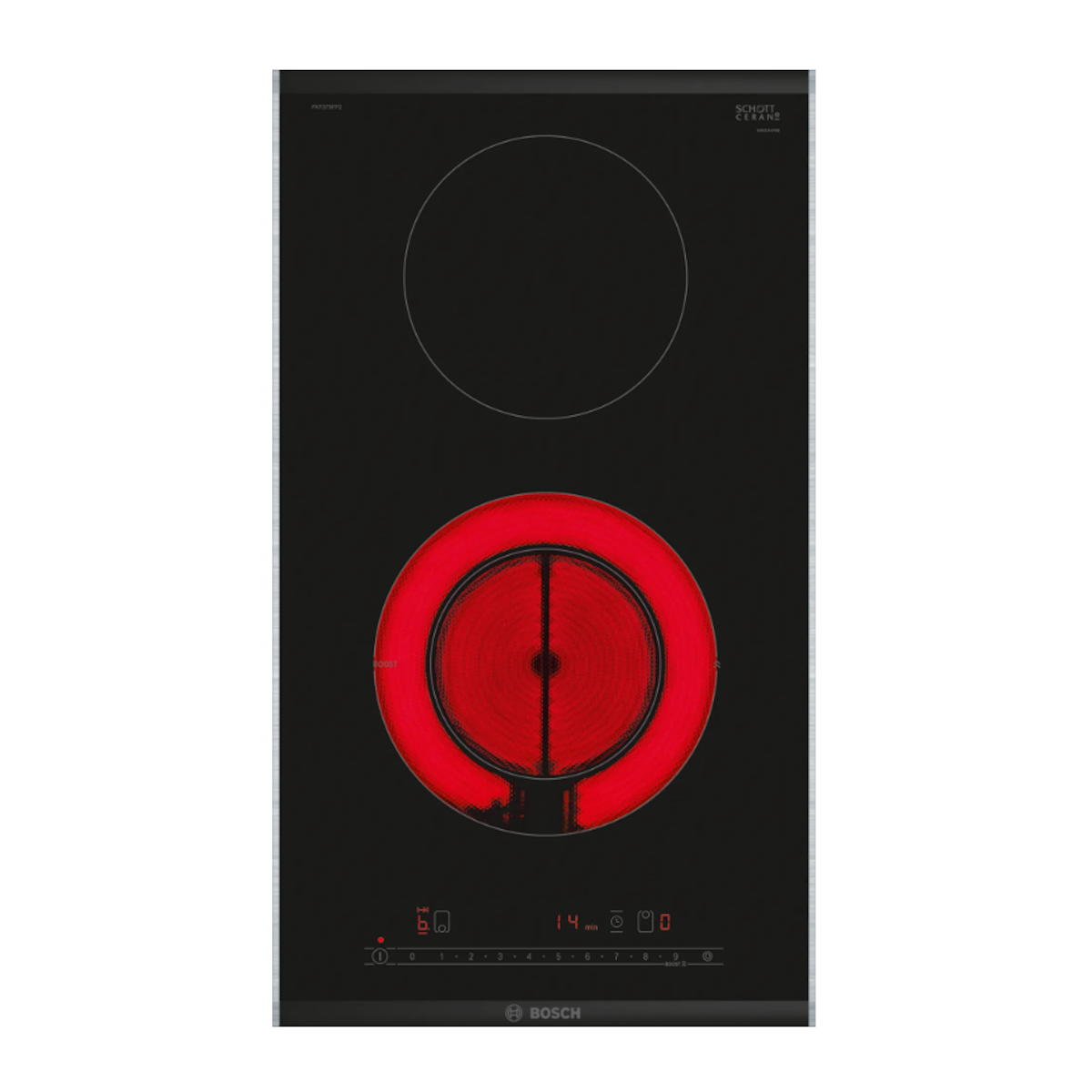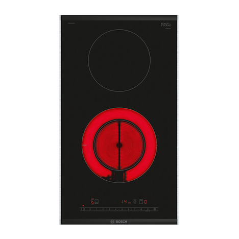 Bosch PKF375FP2E Domino vitrocéramique Série 6 PKF375FP2E de bosch rend la cuisine et le nettoyage plus facile. DirectSelect : accès direct à la zone de cuisson désirée, aux puissances et autres fonctions additionnelles. Comfort-design : design élégant et séduisant avec facettes inox latérales et face avant biseautée. Domino fonctionnel de 30 cm de large. PowerBoost : votre plaque électrique fournit jusqu'à 20 % d'énergie en plus. Timer avec fonction arrêt : désactive la zone de cuisson selectionnée une fois le temps programmé arrivé à échéance.