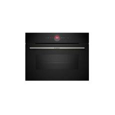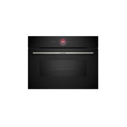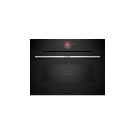 En savoir +Bosch CMG7241B1F Le four combiné micro-ondes Série 8 CMG7241B1F de Bosch est un appareil compact et performant, conçu pour offrir des résultats rapides et précis. Avec 16 modes de cuisson, y compris l'air pulsé, gril et la fonction Air Fry, il garantit une flexibilité maximale en cuisine. Grâce à l'anneau de contrôle digital et à l'écran TFT couleur tactile, la navigation dans les options et les programmes est simple et intuitive. Doté de la technologie Home Connect, vous pouvez contrôler et piloter le four à distance via l'application, tandis que l'assistant vocal et CookAssist vous guident pour préparer des recettes préprogrammées. La cavité intérieure en noir diamant et la porte SoftMove avec fermeture douce ajoutent une touche de confort et de sécurité. Le nettoyage est facilité grâce à la fonction hydrolyse.