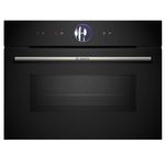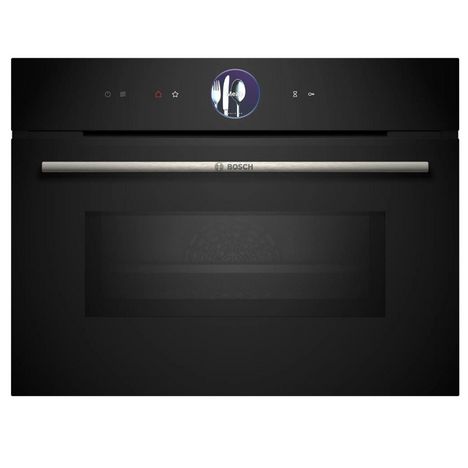 Bosch CMG7761B1 Le four micro-ondes compact Série 8 Bosch CMG7761B1 avec anneau de contrôle digital et écran TFT couleur tactile vous permet d'obtenir très rapidement des résultats de cuisson et de rôtissage parfaits. Avec Home Connect pour contrôler votre four depuis l'application. Anneau de contrôle digital : la commande de four la plus simple et la plus innovante. Ecran TFT couleur tactile : contrôle aisé grâce à l'innovant anneau de contrôle digital et l'écran TFT tactile de 7 x 7 cm. Hotair 4D : une distribution homogène de la chaleur pour des résultats parfaits, qu'importe le niveau de cuisson choisi. Cuisson douce : économise de l'énergie pendant la cuisson et le rôtissage. Préchauffage Booster : chauffe facile et rapide. Doté de 20 modes de cuisson dont hotair 4D, convection naturelle, gril air pulsé, gril grande surface, gril petite surface, position pizza, chaleur de sole, cuisson basse température, décongélation, préchauffage, maintien chaud, air pulsé doux, cuisson douce, air fry, micro-ondes, air pulsé 4D + micro-ondes, convection naturelle + micro-ondes, gril grande surface + micro-ondes, gril petite surface + micro-ondes, gril air pulsé + micro-ondes. Technologie intelligente Inverter : la puissance maximale du micro-ondes est régulée à 600 W en cas d'utilisation prolongée pour préserver la qualité des aliments.