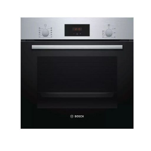 Bosch HBF154ES0F Le four encastrable série 2 de Bosch HBF154ES0F offre une capacité de 66 litres, avec un ventilateur 3D Hotair qui répartit la chaleur rapidement et de façon homogène dans l'ensemble du four. Vous pouvez faire cuire trois plats différents en même temps. Les cuissons sont aussi parfa