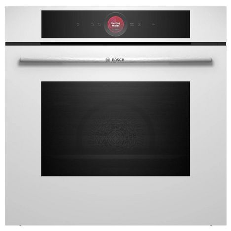 Bosch HBG7741W1 Le four intégrable multifonction Série 8 Bosch HBG7741W1 avec anneau de contrôle digital et écran TFT couleur tactile, la fonction Assist pour la préparation des repas, Air Fry et Home Connect pour contrôler le four depuis l'application. Anneau de contrôle digital : la commande de four la plus simple et la plus innovante. Ecran TFT couleur tactile : contrôle aisé grâce à l'innovant anneau de contrôle digital et l' écran TFT tactile. Cuisson douce : économise de l'énergie pendant la cuisson et le rôtissage. Assistant à commande vocale : réglez facilement le bon programme. Arrêt automatique : la cuisson s'arrête automatiquement dès que le plat est cuit. 14 modes de cuisson : Hotair 3D, convection naturelle, gril air pulsé, gril grande surface, gril petite surface, position pizza, chaleur de sole, cuisson basse température, décongélation, préchauffage, maintien chaud, air pulsé doux, cuisson douce, air fry.