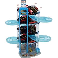 Le Garage Bosch à 5 niveaux est un jouet ludique et interactif conçu pour stimuler l'imagination et la créativité des enfants dès 3 ans. Ce garage comprend un ascenseur fonctionnel, une station-service, une station de lavage, et des voies doubles pouvant être retournées pour varier le jeu. Fabriqué