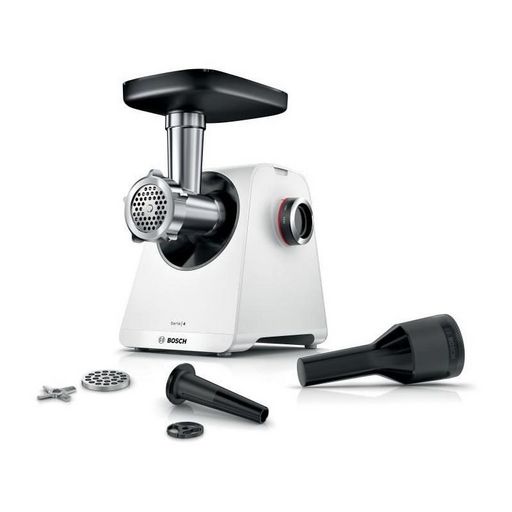 Hachoir a viande - BOSCH - MFWS420W Série 4 - Blanc - 500 W - moteur bloqué 1900 W - 2,5 kg/mn - 2 vitesses - 2 grilles de hac