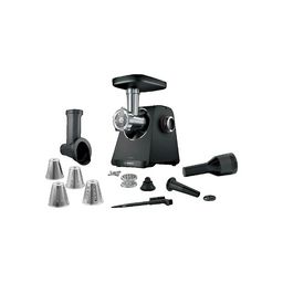 Découvrez le hachoir Bosch MFWS440B, un appareil de petit électroménager indispensable pour votre cuisine. Ce hachoir électrique noir et argenté offre une puissance de 1900 W et un débit de 2,5 kg par minute, idéal pour hacher viande et légumes rapidement. Il est équipé d'un interrupteur marche/arrê