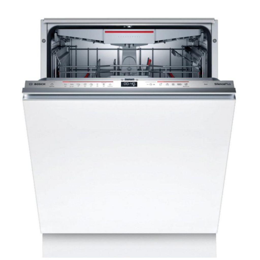 Bosch SMV6ECX93E Lave-vaisselle Tout intégrable Série 6 Bosch SMV6ECX93E doté de 8 programmes dont Auto 45-65°C et Silence 40 dB. Programme Entretien de la machine. Options Zone intensive, VarioSpeed Plus (3 fois plus rapide) et EfficientDry : ouverture de porte automatique en fin de cycle pour des résultats de séchage parfaits. Extra Clean Zone : nettoyage en profondeur des plats les plus incrustés dans le panier supérieur grâce à ses 3 buses rotatives. Touche Favourite : enregistrez votre cycle de lavage favori. Home Connect : contrôle et diagnostic à distance, Silence à la demande (réduction du bruit de votre lave-vaisselle selon vos besoins et à n?importe quel moment) et grâce au partenariat avec Amazon Alexa, votre lave-vaisselle peut également être contrôlé par la voix. Système Auto 3in1 : détection lessivielle automatique. Système Super Brillance : vos verres fragiles et vos services délicats en porcelaine sont systématiquement lavés avec un soin particulier. AquaSensor : ce système régule la consommation d'eau selon le type et le degré de salissure, en utilisant une cellule infrarouge pour optimiser le rinçage. Moteur EcoSilence Drive : exceptionnellement silencieux, il est également particulièrement efficace et garantit une faible consommation électrique. Affichage du temps restant en façade et sur la tranche de la porte. TimeLight : Projection du temps restant au sol.