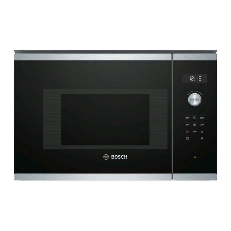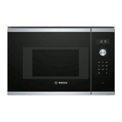 Découvrez le micro-ondes encastrable Bosch Serie 6 BFL524MS0, alliant design élégant noir et inox avec des performances optimales. Doté d'une puissance de 800 W et d'une capacité de 20 litres, il offre 7 programmes automatiques, 5 niveaux de puissance, un panneau tactile avec affichage LED, un plate