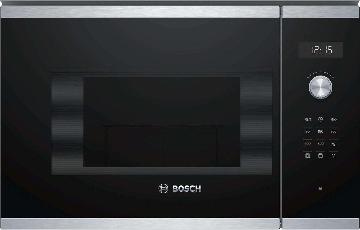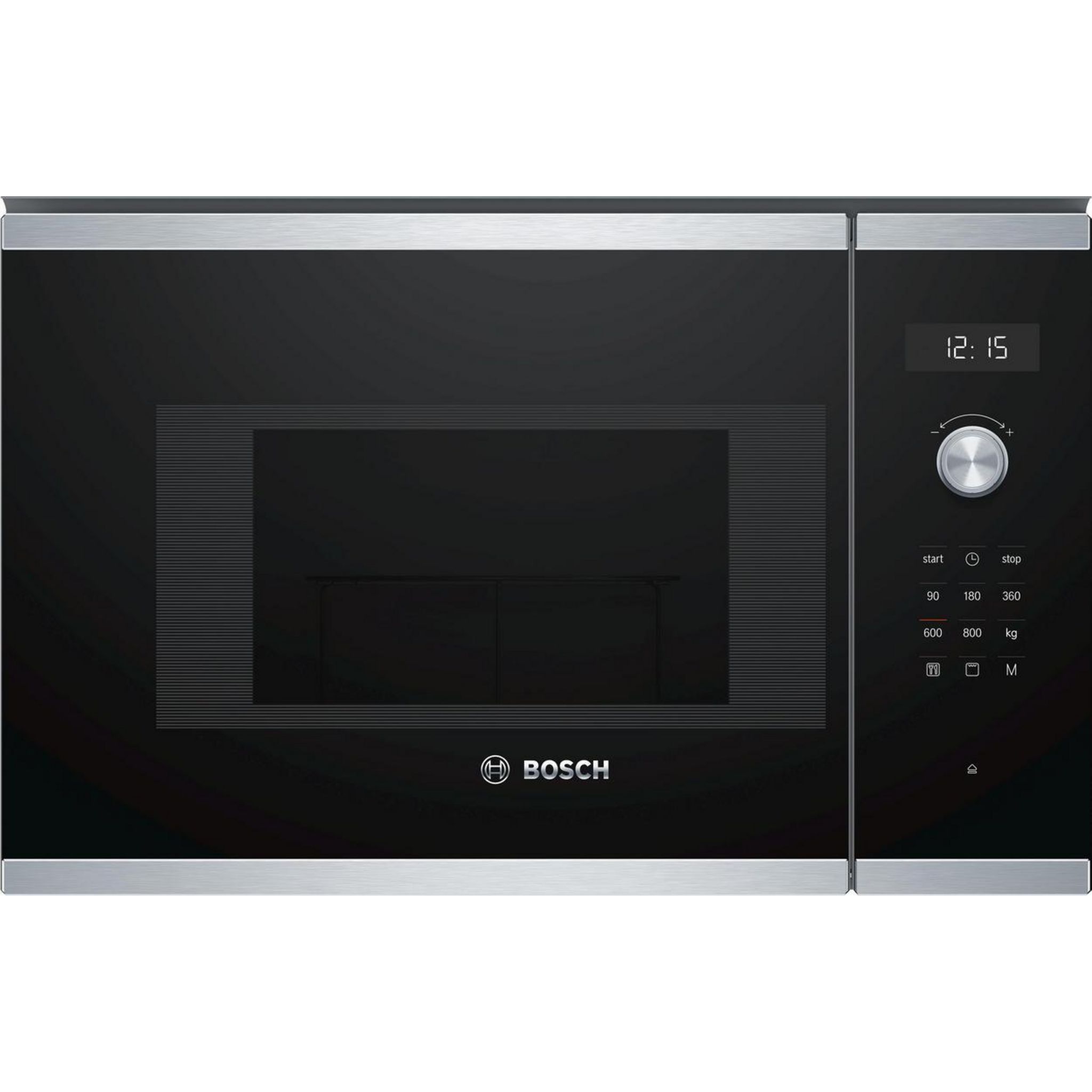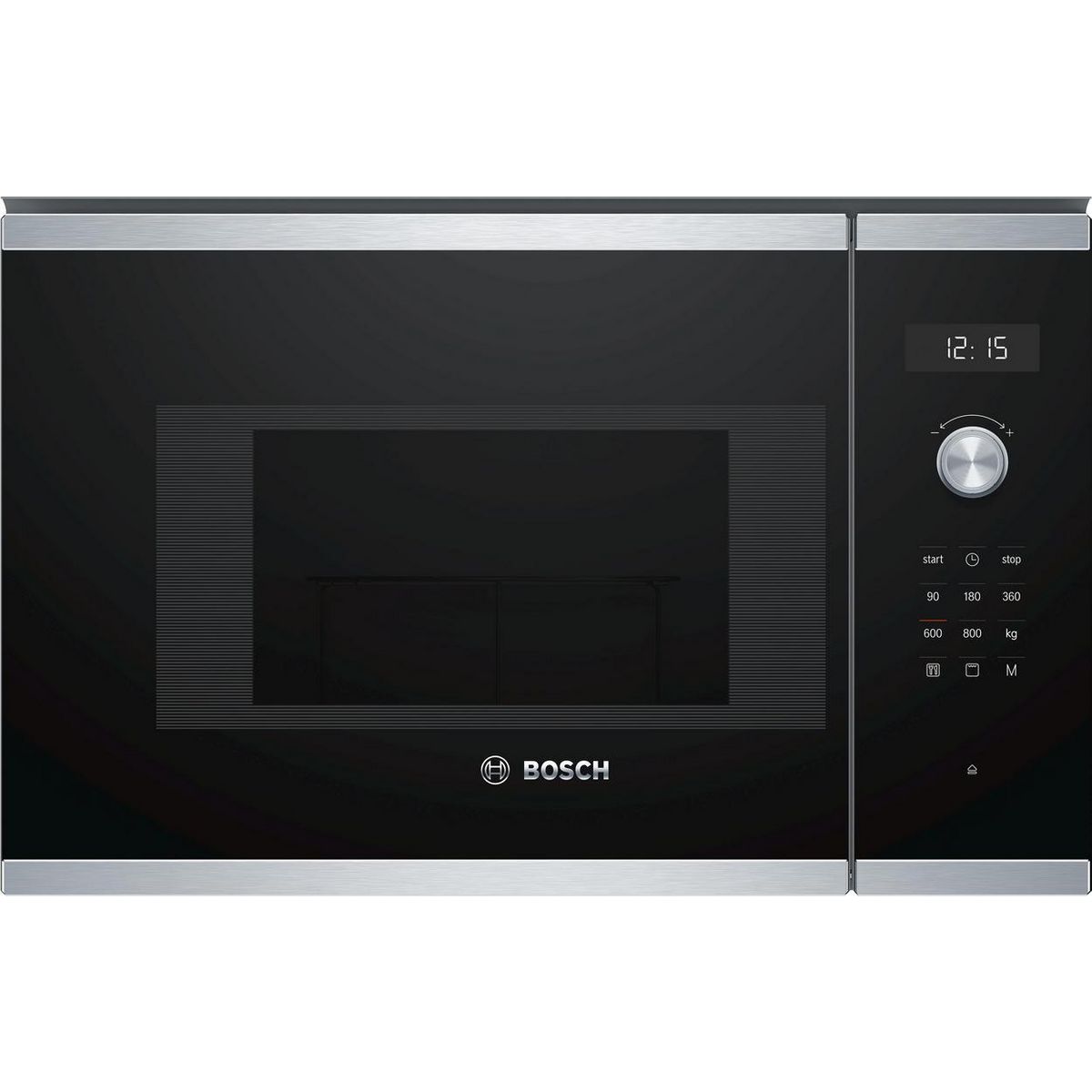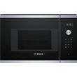 Bosch BEL524MS0 Le micro-ondes encastrable Bosch BEL524MS0 pour une niche de 38 cm : pour décongeler, réchauffer et préparer rapidement vos plats.Fonction micro-ondes : pour décongeler, réchauffer et préparer rapidement vos plats.AutoPilot 8 : 8 programmes automatiques pour des résultats de cuisson parfaits.Porte électronique : ouverture confortable de la porte grâce à une touche senseur.Fonction grill : des résultats parfaits d?une façon rapide et en toute simplicité, grâce au gril puissant.Programmateur électronique de 99 min à affichage digital5 Puissances micro-ondes : 90 W, 180 W, 360 W, 600 W, 800 WGril de 1 kW. Puissance du gril et du Micro ondes 90 W, 180 W, 360 W combinable. Les modes de cuisson micro-ondes et grill peuvent être utilisés séparément ou combinés. Volume 20 l. Confort / Sécurité :Horloge électronique. Bouton à prise centrale, Boutons escamotables, commandes par touchControl. Cavité Acier inox. Charnières à gauche. Plateau tournant en verre : 25,5 cm. 8 programmes automatiques. 4 décongélation et 3 micro- ondes,1 programme en combiné. Fonction mémoire (1 position). Eclairage LED.
