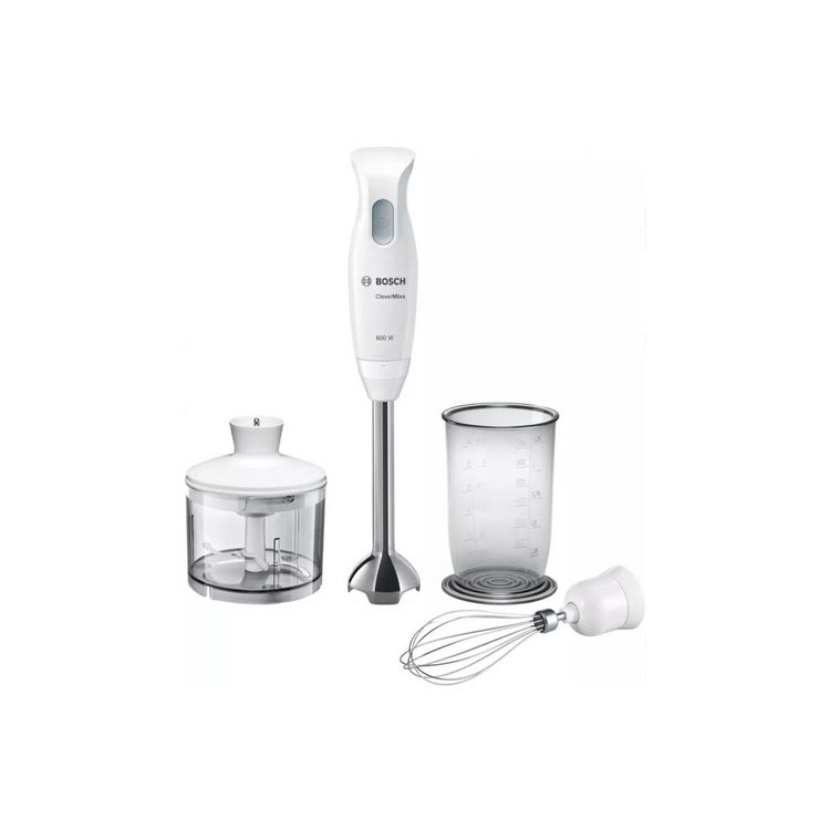 Bosch MSM26500 Mixeur plongeant CleverMixx MSM26500 de Bosch.Puissant moteur de 600 W : le pouvoir de mixer des ingrédients difficiles et d'utiliser plusieurs accessoires.Poignée ergonomique pour un grand confort d'utilisation.Facile à utiliser du bout des doigts.Inclus mini hachoir et fouet pour pr