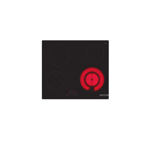 Bosch PKF611BB8H Plaque de cuisson Série 4 Bosch PKF611BB8H est un espace pour 4 casseroles ou poêles Flexibilité des zones de cuisson. Zone double utilisez des ustensiles de cuisson de toutes dimensions sur la zone de cuisson extensible Zone de cuisson avant gauche 145 mm, 1,2 kW. Zone de cuisson a