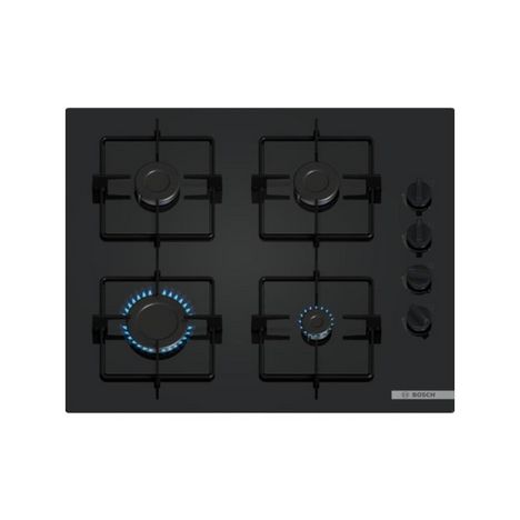 Bosch POP6B6K30 Table gaz Bosch POP6B6K30 Série 2. 4 foyers dont un puissant brûleur rapide de 3 kW pour une cuisson efficace. Commandes latérales avec boutons ergonomiques offrant une prise en main confortable. Allumage électrique intégré pour une utilisation pratique et sécurisée. Sécurité thermoc