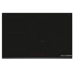 Bosch PVS831HC1E La table de cuisson induction Série 6 Bosch PVS831HC1E DirectSelect avec PerfectFry Plus : commande directe et simple avec capteur de température pour éviter les brûlures. CombiZone : pas assez de place pour chauffer un grand faitout ? Combinez deux zones de cuisson à induction ! Zone de cuisson de 28 cm : pour les petites et grandes casseroles. Home Connect : table de cuisson connectée pour faciliter votre vie au quotidien. CookConnect : contrôle la hotte via la table de cuisson (avec hotte compatible). PowerBoost : jusqu'à 50 % de puissance en plus pour des plaques à induction plus efficaces. Timer avec fonction arrêt : éteint la zone de cuisson à la fin du temps programmé. PerfectFry Plus Sensor : maitrisez la cuisson grâce à la régulation automatique de la température via un capteur intégré. Fonction Re-Start : en cas d'arrêt brutal de la table, mémorisation de la température initiale pendant 4 secondes. Fonction QuickStart : détection automatique des récipients sur la zone de cuisson. Touches Pause et Favoris : accédez directement aux fonctions favorites grâce à un bouton configurable. Compatible Smart Hood Automatic : la hotte adapte automatiquement sa vitesse grâce aux données de cuisson fournies en continu par la table de cuisson (avec une hotte adaptée et un compte Home Connect connecté).
