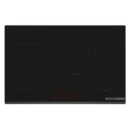 Bosch PXE831HC1E La table de cuisson PXE831HC1E de Bosch connectée pour faciliter votre vie au quotidien. Vérifiez si la table de cuisson est éteinte même en dehors de chez vous, et trouvez des recettes ou des fonctions supplémentaires dans l'application Home Connect. Doté d'une fonction ReStart pour rétablir tous les réglages précédents en remettant la table de cuisson en marche dans les 4 secondes en cas d'arrêt involontaire. La hotte s'active automatiquement pendant les cuissons grâce à la connexion WiFi (voir modèles compatibles) grâce à la technologie CookConnect et adapte la vitesse de la hotte grâce aux données de cuisson fournies en continu par la table de cuisson (avec une hotte adaptée et un compte Home avec Smart Hood Automatic. PerfectFry Plus : commande directe et simple avec capteur de température pour éviter les brûlures. FlexMotion : reconnaissance des déplacements des récipients : lorsque vous déplacez une casserole vers une autre zone de cuisson, transférez tous les réglages précédents vers la nouvelle zone par la simple pression d'un bouton. Pan Boost, sélectionnable via le bouton Favoris/Home Connect App (disponibilité prévue pour Q4/2024 via une mise à jour logicielle pour les appareils connectés à Home Connect).. Chauffez les poêles plus rapidement qu'en puissance max. tout en protégeant leurs revêtements.