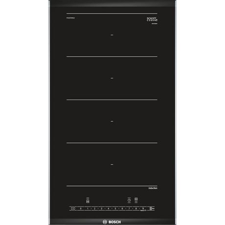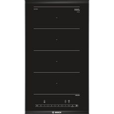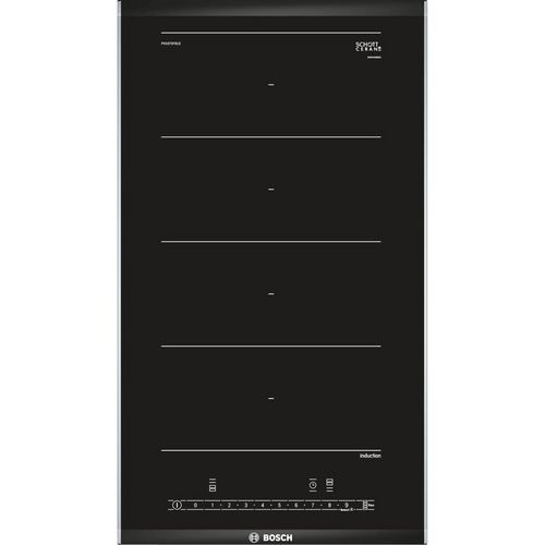 Bosch PXX375FB1E Domino induction Bosch PXX375FB1E avec zone FlexInduction: vous pouvez mettre plusieurs récipients sur la zone libre.DirectSelect : permet un accès direct aux zones de cuisson, aux puissances et aux fonctions de la table.Zone FlexInduction : plus de flexibilité en combinant une petite zone de cuisson à une grande zone de cuisson pour chaque type de plat.ComfortDesign: design élégant et épuré à facettes et baguettes latérales en inox.Minuterie avec fonction arrêt : désactive la zone de cuisson sélectionnée une fois le temps programmé arrivé à échéance.Table induction : rapide, précis, facile à nettoyer et avec une faible consommation d'énergie.PowerBoost : jusqu'à 50 % de puissance supplémentaire pour des cuissons plus rapides.Affichage digitalBandeau DirectSelect.2 foyers inductionZones de cuisson : 1 x 400 mm x 210 mm, 3.3 kW (PowerBoost 3.7 kW) or 2 x 200 mm, 2.2 kW (PowerBoost 3.7 kW)Fonction QuickStart : détection automatique des récipients sur la zone de cuissonFonction Re-Start : en cas d'arrêt brutal de la table, mémorisation de la température initiale pendant 4 secondesAffichage de la consommation énergétique17 positions de réglagePowerBoost sur chaque foyerTimer sur chaque foyerTémoin de chaleur résiduelle à 2 niveauxSécurité surchauffe.