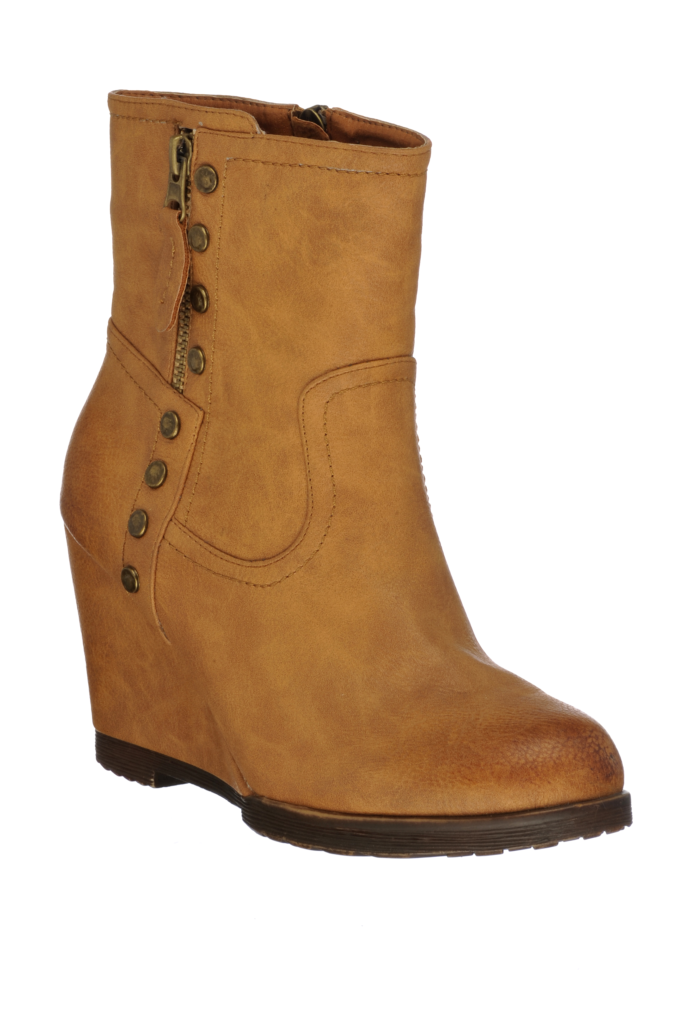 En savoir +Fermeture zippée côté intérieur. Fermeture fantaisie et rivets côté extérieur. Couleur: camel. Composition extérieur : PU. Composition intérieur et semelle : autres matériaux. Hauteur de la tige : 13,5 cm environ Hauteur du talon : 8 cm environ * Prix de vente conseillé en 2014.