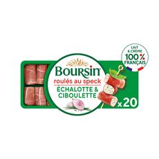 Découvrez Boursin® Apéritif Roulés Échalote et Ciboulette, de généreuses et savoureuses bouchées de Boursin® alliant la douceur de l'échalote et la sensation de fraîcheur de la ciboulette, parfaitement enroulées de jambon speck origine Italie. Préparées avec du lait et de la crème 100% français, les roulés de Boursin® Apéritif vont s'inviter dans vos apéritifs pour un effet garanti !