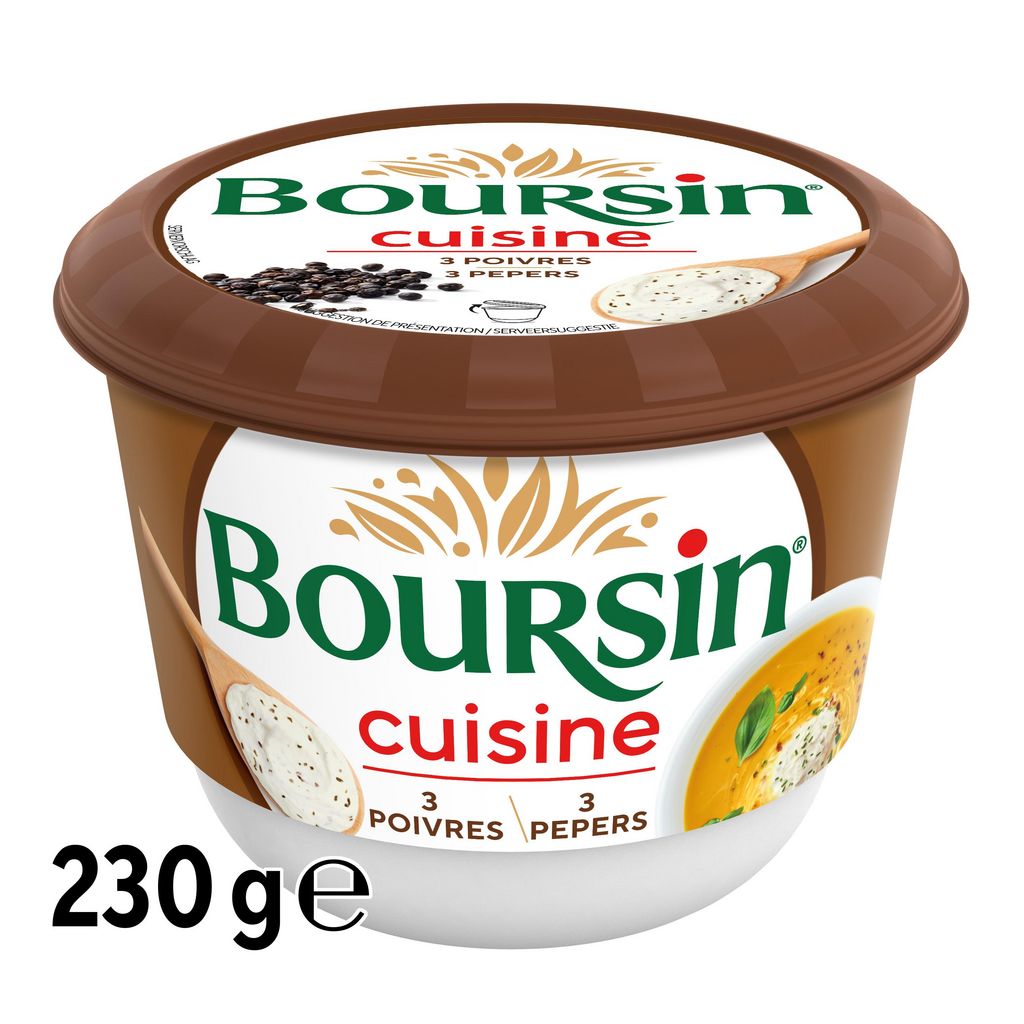 Retrouvez le goût inimitable du fromage Boursin® 3 Poivres dans tous vos petits plats. Ce mélange onctueux et savoureux deviendra très vite votre allié préféré pour accompagner vos repas improvisés comme vos meilleures recettes. Utilisé au quotidien ou incorporé dans une recette élaborée, voilà le petit plus qui saura vous étonner et charmer vos invités !