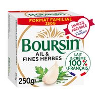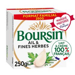L'incontournable recette du fromage frais à tartiner Boursin® en grand format, subtil mariage de saveurs : du lait, de la crème, de l'aïl, des fines herbes, du sel et du poivre. Ce fromage à tartiner à l'ail et aux fines herbes, fabriqué en France, sera parfait pour vos plats maison cuisinés et vos apéritifs.