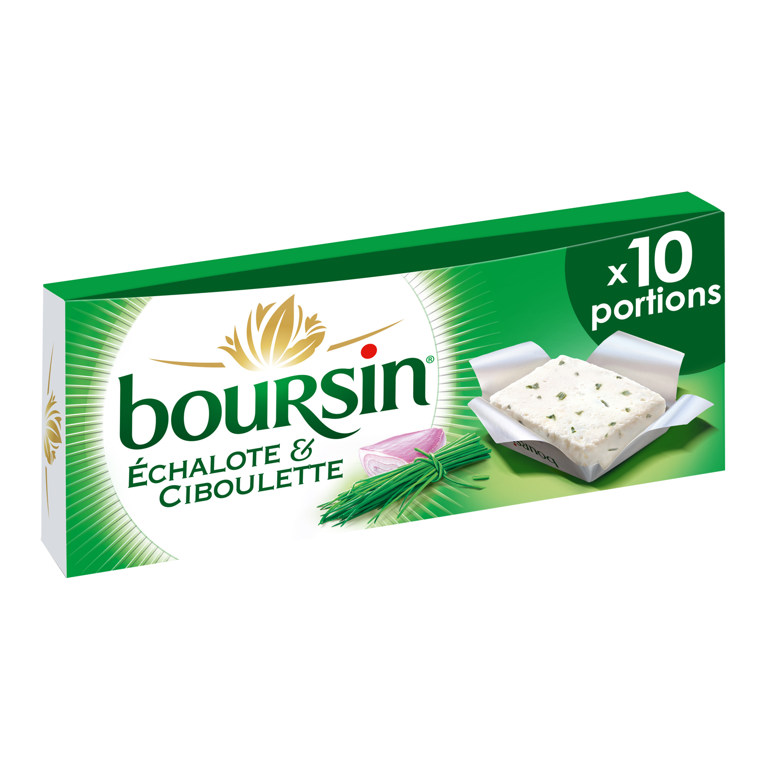 Un format portions ultra-pratique qui préserve parfaitement la douceur et le fondant du fromage frais à tartiner Boursin® Echalote et Ciboulette. Fabriqué en France, ce fromage est idéal sur des tranches de pain ou en apéritif.