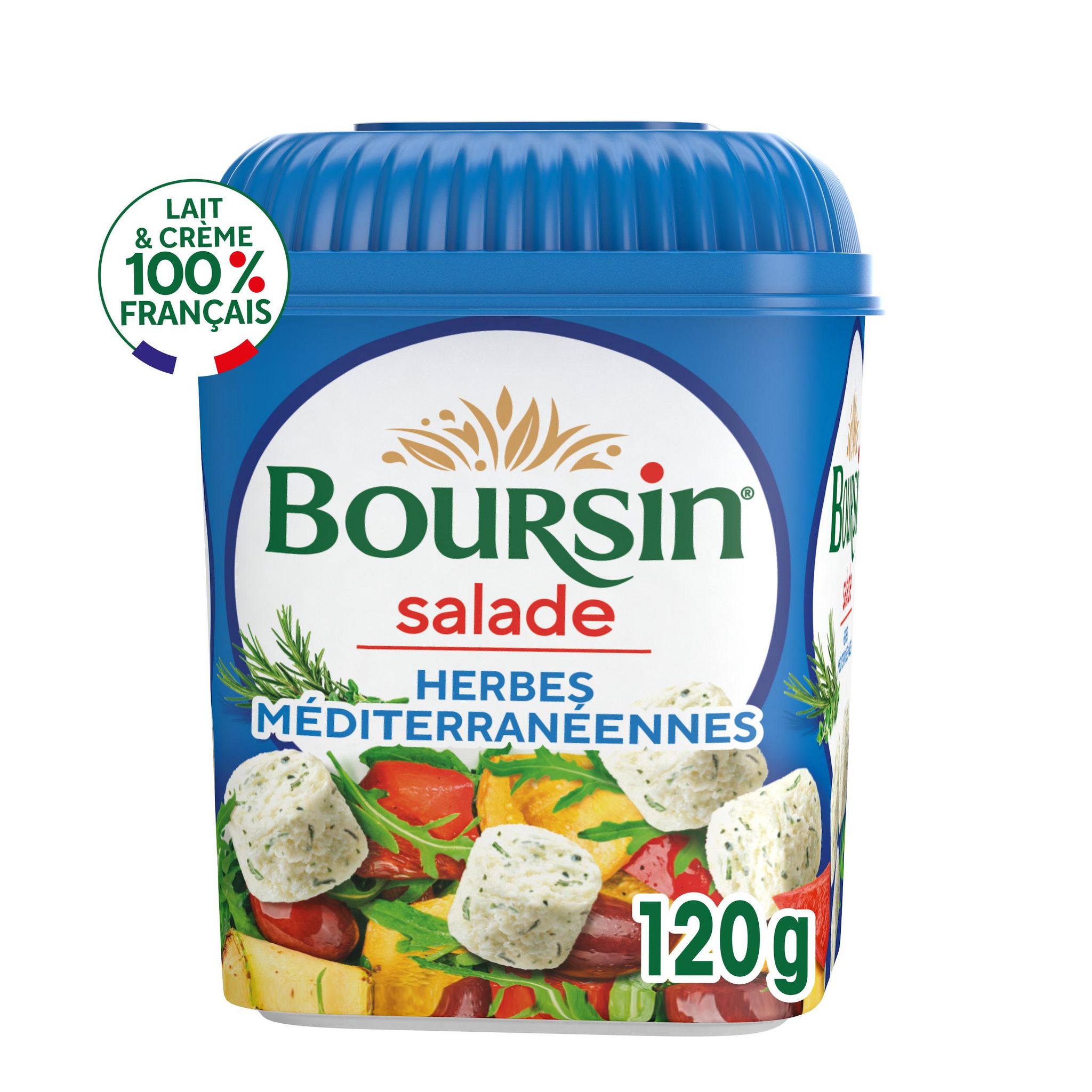 Retrouvez Boursin® Salade Herbes Méditerranéennes dans des petits dés de fromage parfaits pour agrémenter vos salades et vos plats ! Mettez du soleil dans vos assiettes avec ce subtil mélange de thym et de romarin. Préparées avec du lait et de la crème 100% français, ces bouchées fromagères généreuses sont un succès garanti !