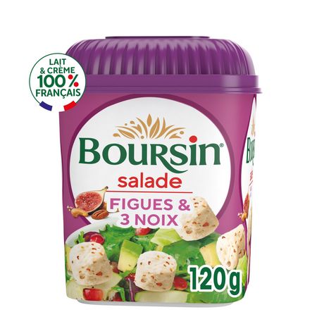 Retrouvez l'incontournable fromage Boursin® Figues et 3 Noix dans des petits dés de fromage. Une recette irrésistible alliant le croquant de la noix au goût délicieusement fruité de la figue parfaite pour des salades gourmandes. Préparées avec du lait et de la crème 100% français, ces bouchées fromagères généreuses sont un succès garanti !