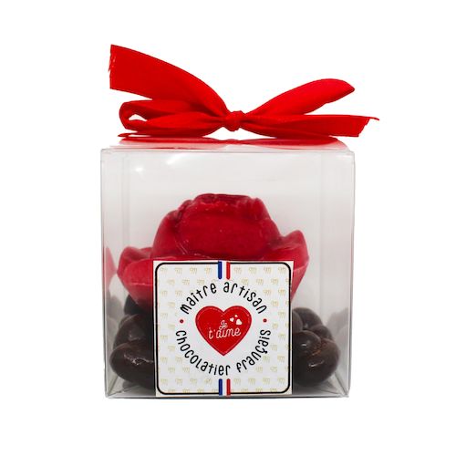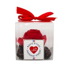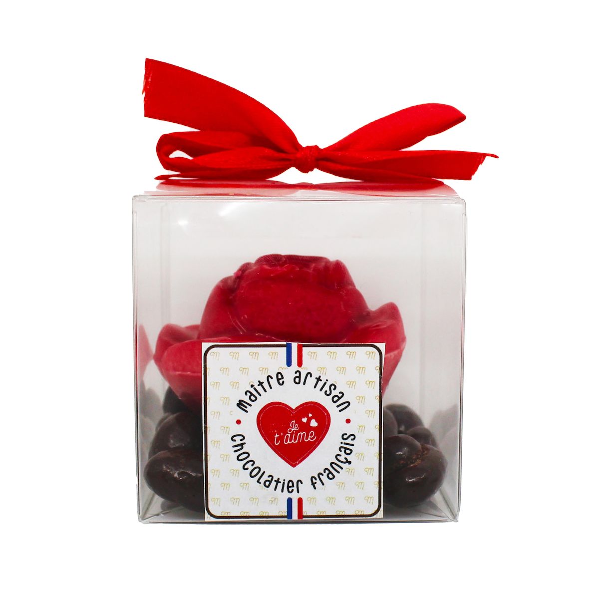 Ingrédients : AMANDES; chocolat blanc (sucre, beurre de cacao, LAIT entier en poudre, emulsifiant:lecithine de SOJA, arome naturel de vanille, couverture blanche 30% min.cacao); chocolat noir (pate de cacao, sucre beurre de cacao, emulsifiant : lecithine de SOJA, arome naturel de vanille, couverture noire 73% min.cacao); praliné (fruits secs 50% (AMANDES, NOISETTES), sucre, huile d'AMANDE raffinée, émulsifiant : lecithine de SOJA, arome naturel de vanille), chocolat au lait (sucre, beurre de cacao, poudre de LAIT entier, pate de cacao, émulsifiant : lecithine de SOJA, arome naturel de vanille. Couverture lait 35% min.cacao); beurre de cacao; sirop de glucose; beurre de cacao; gomme arabique; colorant: huile de tournesol, E.120; E160c; huile de tournesol; emulsifiant : lecithine de SOJA