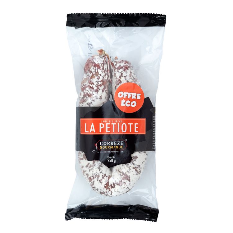 Ingrédients : Viande de porc, sel, LACTOSE, épices, dextrose, sucre, ail, conservateurs : nitrate de potassium et nitrite de sodium ; ferments. Boyau naturel de porc. Poudre de fleurage : amidon de riz.