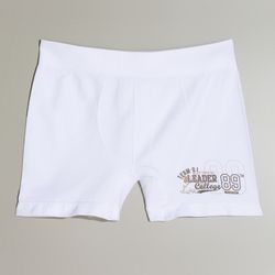 Coupe moderne et confort inégalable grâce à ce boxer uni enfant sans coutures, en microfibre extensible. Ceinture élastiquée, en côtes, bien large et à la tenue parfaite. Bords francs à la base, imprimé esprit collège sur le devant. Légers motifs fantaisie en ton sur ton dans la maille sur le dev