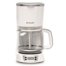 Brandt CAF1318ES Cafetière à filtre programmable Brandt CAF1318ES grande capacité, préparez jusqu? à 18 tasses. Du café chaud pour un réveil en douceur grâce à son programme avec départ différé (jusqu'à 24 heures à l?avance). Pour un café encore plus intense, l?arrosage périphérique permet de mieux imprégner la mouture du café et de répartir parfaitement les arômes de votre café. Faites durer vos petits déjeuners, grâce à sa fonction maintien au chaud de 40 minutes, vous pourrez profiter de votre café à bonne température plus longtemps. Système anti-gouttes pour servir le café à tout moment même en pleine préparation du café. Astucieux : son indicateur de niveau d'eau gradué permet de préparer le bon nombre de tasses de café en fonction de la quantité d'eau versée.