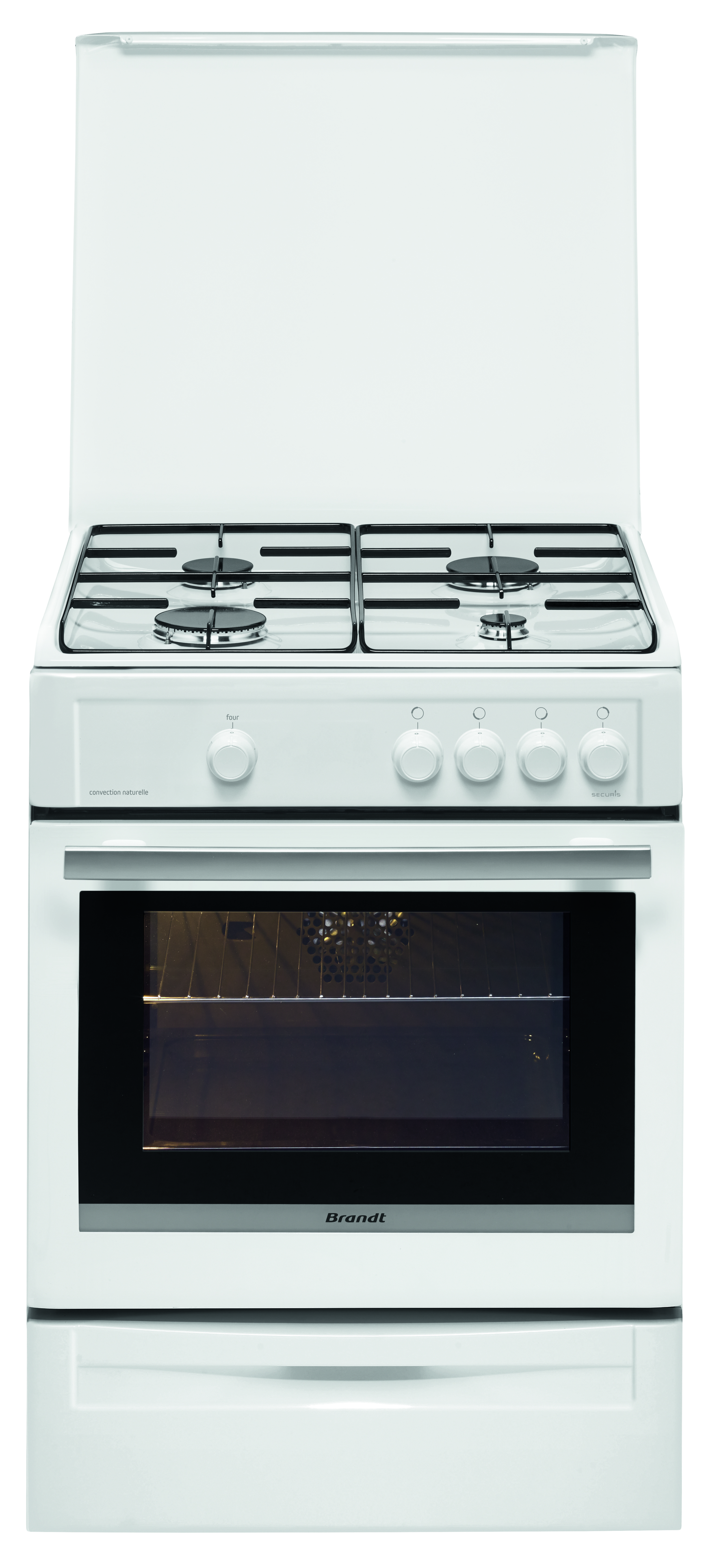 Cuisinière à gaz BCG660W, 60 cm, 4 foyers à gaz, four à convection naturelle