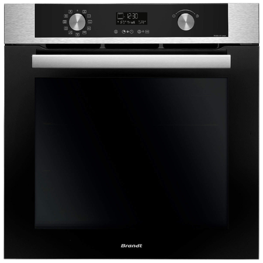 Brandt BOP2432X Four intégrable BOP2432X de Brandt permet de cuire simultanément sur plusieurs niveaux sans mélange d'odeurs. Il préconise la T° adaptée pour chaque fonction proposée. La cuisson vapeur permet de cuire vos aliments à plus basse température et donc de préserver leurs nutriments ainsi que votre santé, tout en rendant vos préparations toujours plus croustillantes. Préconisée pour la cuisson du pain, cette fonction permet d'obtenir une croûte croustillante et dorée. (T° préconisée 205°)