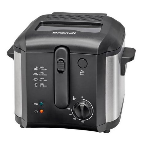 Brandt FRI30X Friteuse Brandt FRI30X est une friteuse compacte pour des frites croustillantes !- Montée en température rapide grâce aux résistances immergées- Zone froide en fond de cuve : les résidus de friture tombent au fond de la cuve et ne brûlent pas pour une huile propre et saine plus longtemps- Thermostat réglable de 130° à 190°C pour s'adapter parfaitement à toutes vos fritures- Poignée pliable- Couvercle démontable avec hublot de contrôle pour surveiller la cuisson à tout moment- Interface mécanique- Dispositif de sécurité thermique - Panier, cuve et couvercle compatibles lave-vaisselle.
