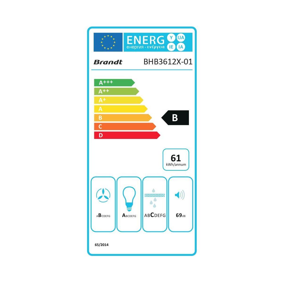 | Consommation d'énergie | Classe d'efficacité énergétique: B, Consommation annuelle d'énergie en kWh: 61 kWh, Classe d'efficacité d'évacuation de la vapeur et fumées: B, Classe d'efficacité de l'éclairage: A, Classe d'efficacité de filtration des graisses: C | |