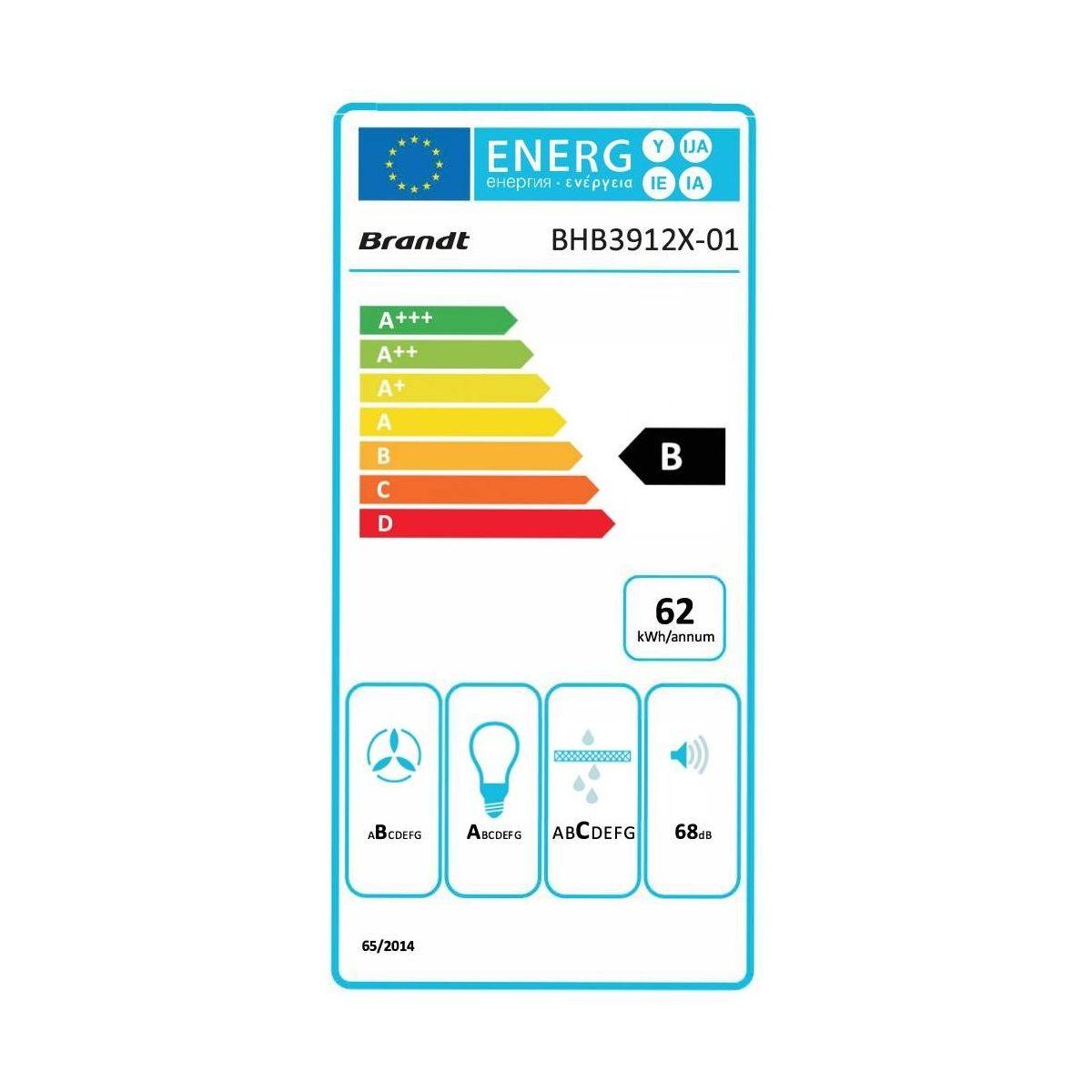 | Consommation d'énergie | Classe d'efficacité énergétique: B, Consommation annuelle d'énergie en kWh: 62 kWh, Classe d'efficacité d'évacuation de la vapeur et fumées: B, Classe d'efficacité de l'éclairage: A, Classe d'efficacité de filtration des graisses: C | |