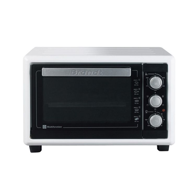 Brandt FC160MW Mini four multifonction avec programmation mécanique - 4 positions de cuisson pour varier les plaisirs dont chaleur tournante et grill - 3 gradins - Thermostat 250°C - Minuteur 60 minutes - Porte double vitre pour une isolation optimisée. plus de sécurité et une meilleure efficacité é