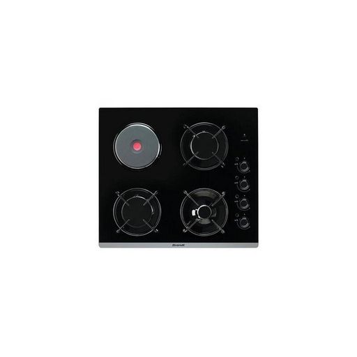 Table de cuisson mixte - 1 plaque et 3 brûleurs dont 1 rapide 3,1 kW - Allumage intégré aux manettes - Sécurité gaz par thermocouple - Grilles mono-foyer émaillées - Barette avant inox sérigraphiée.
