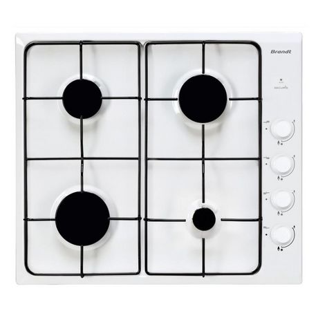 En savoir +Brandt BPE6410W Table de cuisson à gaz BRANDT BPE6410W.Confort d'utilisationAvec l'allumage intégré aux manettes, un seul geste suffit pour allumer les foyers!Qualité de cuisson.Cette table est équipée de quatre puissances de foyer pour s'adapter à tous les styles de cuisson, notamment le plus petit de 850W pour les préparations délicates ou les petites casseroles.SécuritéVotre table est dotée d'une sécurité Gaz par thermocouple qui prévient les risques de fuite de gaz en cas d'extinction accidentelle de la flamme.