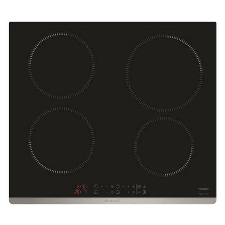 Brandt BPI1641UX Table de cuisson induction Brandt BPI1641UX dotée de 4 foyers dont 1 zone Ø 21 cm 3,6 kW avec 10 niveaux de puissance dont Ultraboost : il permet une montée en chauffe du foyer, jusqu'à 20% plus rapide que la fonction boost altique. Fonction Boil : la table ajuste automatiquement la