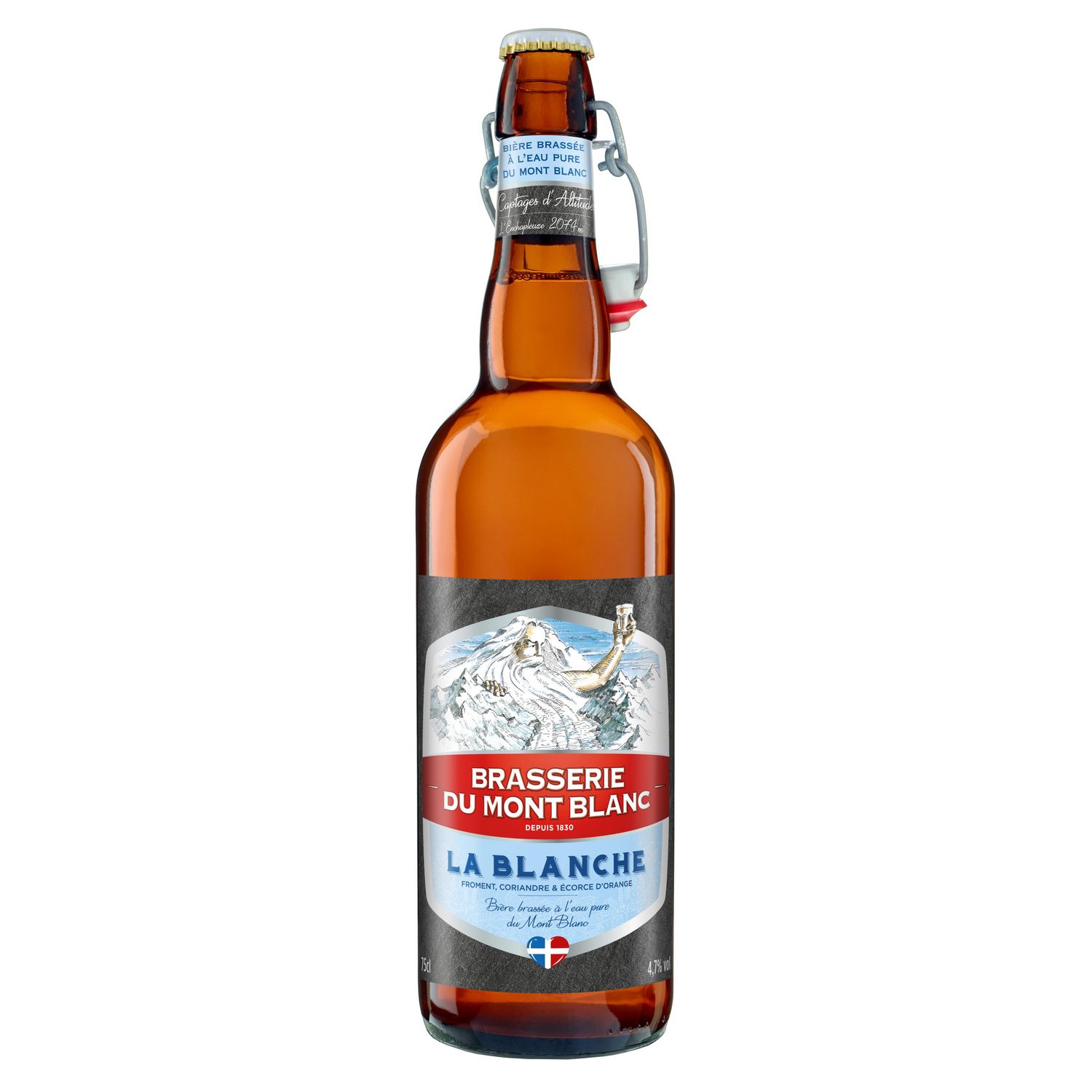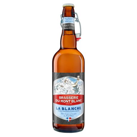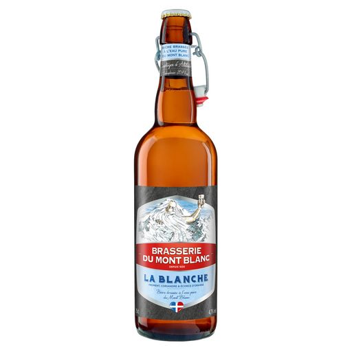 Eau des glaciers du Mont-Blanc, MALT D'ORGE ET DE FROMENT, AVOINE (céréales contenant du GLUTEN), houblon, écorce d'orange, CORIANDRE.