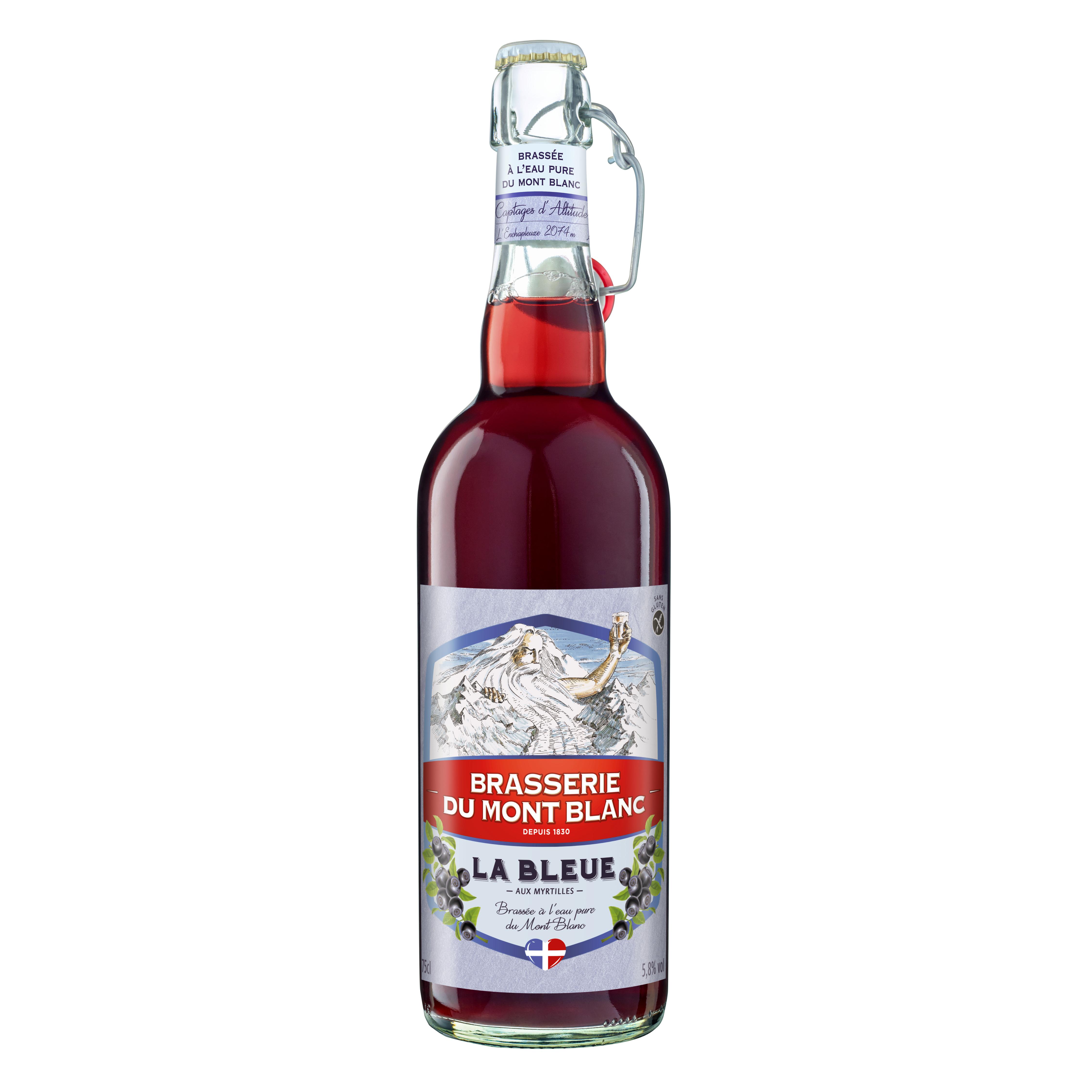 La Bleue est une création originale issue du savoir-faire reconnu de la Brasserie du Mont Blanc, de l'eau pure des glaciers du Mont Blanc et de la Myrtille. Fine et légère, la Bleue associe la puissance aromatique du fruit tout en conservant l'amertume d'une boisson alcoolisée fermentée : le meilleur des Alpes dans votre verre.