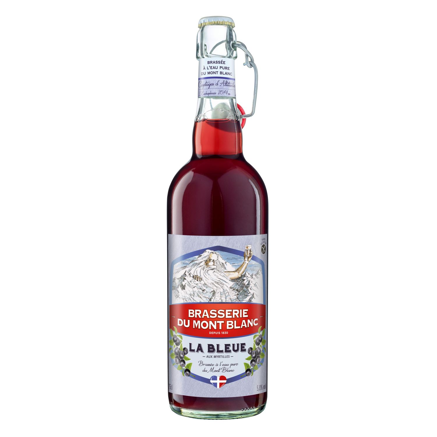La Bleue associe l'eau pure des glaciers du Mont Blanc aux malts et à la puissance aromatique de la myrtille.