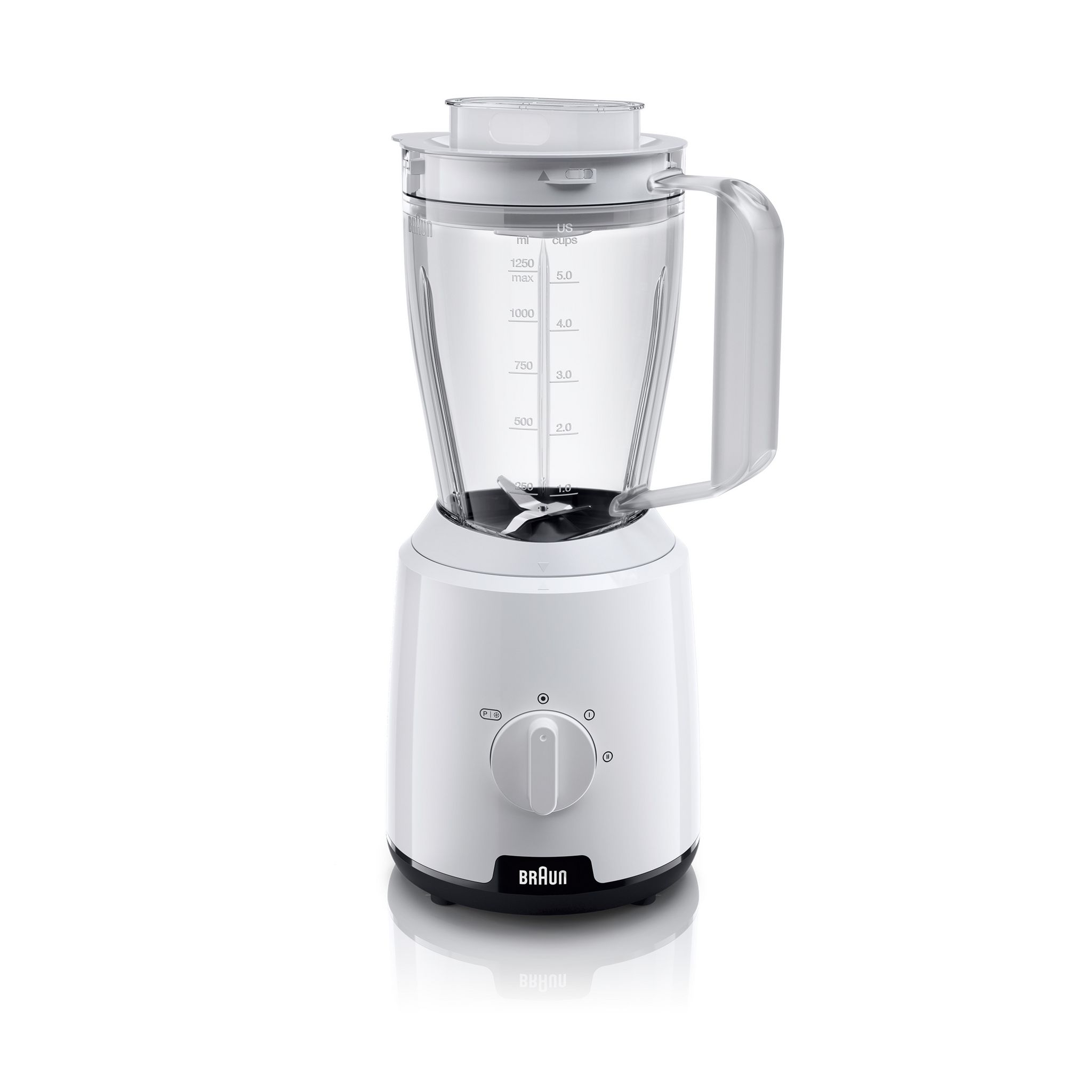 Le blender JB1000 de Braun est un appareil électroménager permettant de mixer et de préparer des smoothies, des soupes, des sauces, des pâtes à crêpes, etc. Il dispose d'un bol en plastique d'une capacité de 1,25 litre et d'un couteau en acier inoxydable amovible pour faciliter le nettoyage. Il possède deux vitesses et une fonction Pulse pour ajuster la texture des préparations.