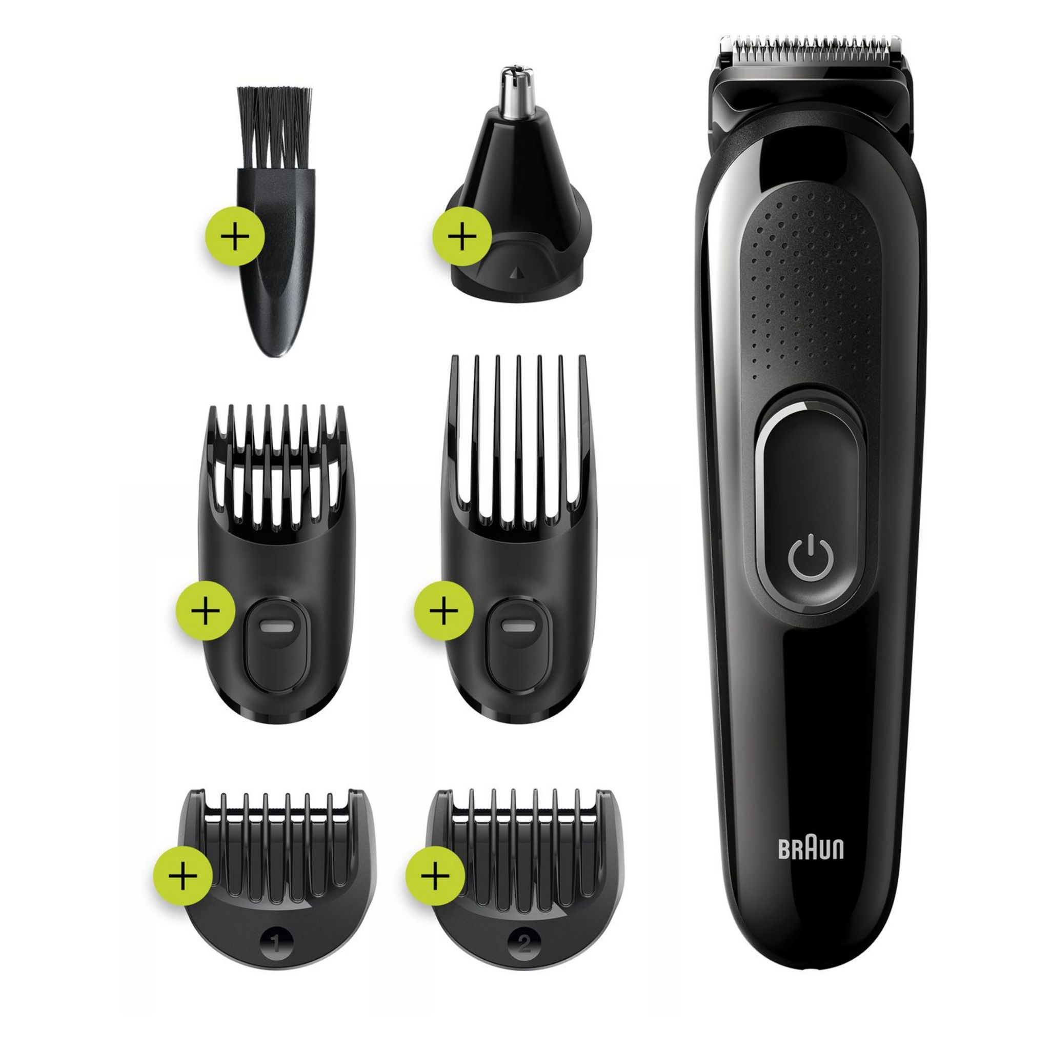 Braun 3 MGK3220 Tondeuse 6-En-1 Tout-En-Un - Tondeuse Barbe, Cheveux Et Visage Avec Lames Affûtées Inusables, Tondeuse Oreilles Et Nez, 5 Accessoires, Noir