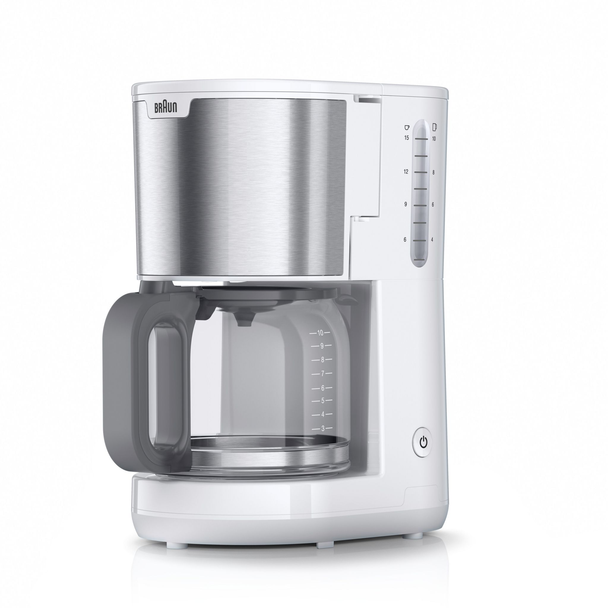 La cafetière à filtre KF1500WH d'une puissance de 1000 W, peut préparer jusqu'à 10 grandes tasses ou 15 petites tasses de café, ce qui est idéal pour les grandes familles ou les réunions entre amis.