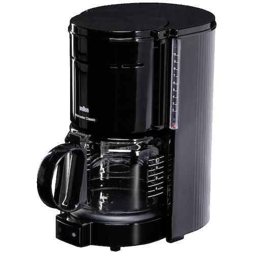 Découvrez la cafetière électrique Braun KF 47, idéale pour préparer jusqu'à 10 tasses de café. Dotée d'une puissance de 1000 W, elle garantit une préparation rapide et efficace. Son design noir élégant s'intègre parfaitement dans toutes les cuisines modernes. La fonction anti-goutte permet de servir une tasse pendant l'infusion. Le porte-filtre pivotant avec protection contre les débordements facilite le remplissage et le nettoyage, tandis que l'indicateur extérieur du niveau d'eau offre une lecture simple. Après utilisation, toutes les pièces sont lavables en lave-vaisselle. La cafetière possède également un système d'arrêt automatique après 40 minutes d'inactivité pour une sécurité accrue. Fabriquée en plastique noir, elle pèse 2 kg, combinant fonctionnalité, praticité et design.