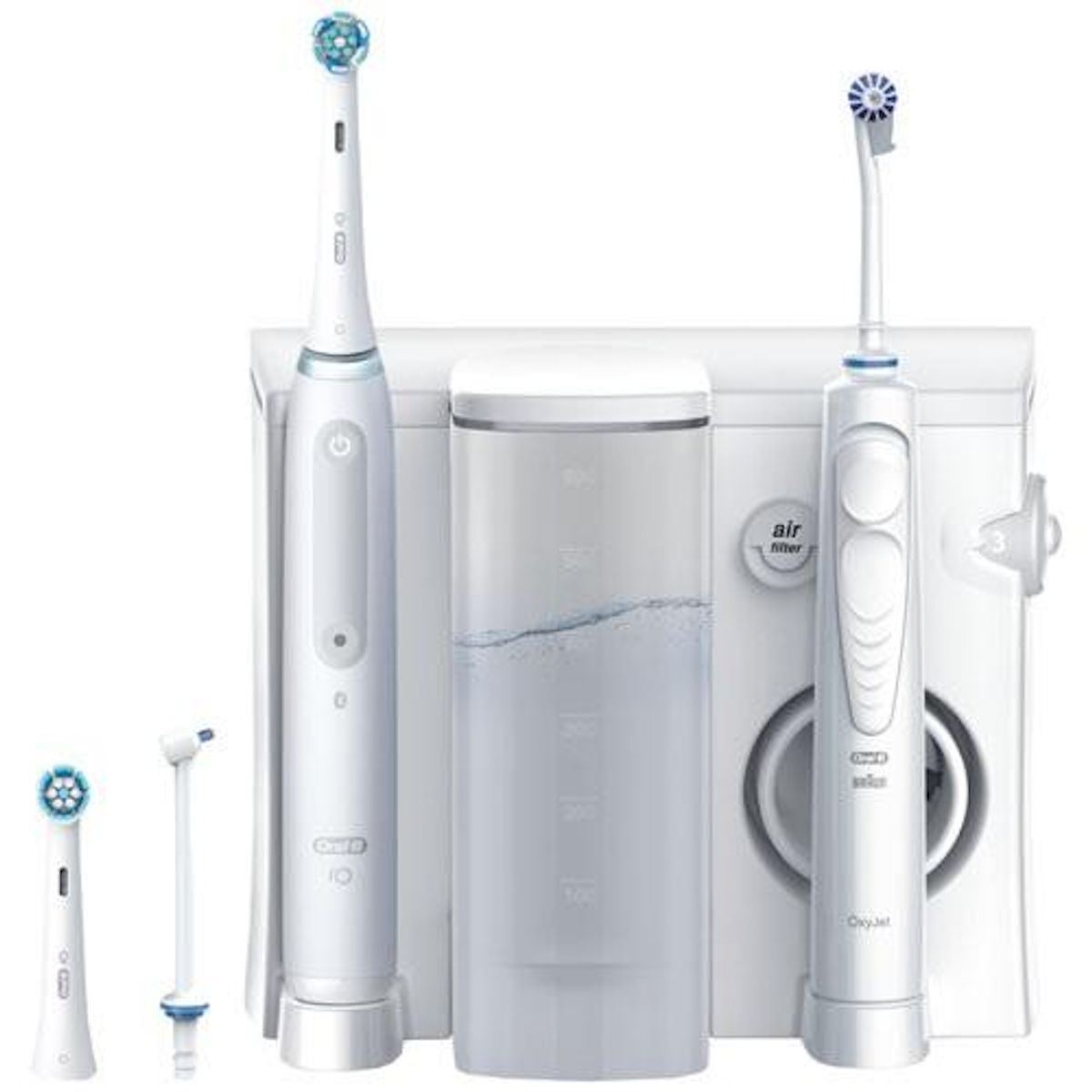 Accessoire(s) inclus : Hydropulseur Oxyjet, Brosse à dents iO4 électrique, 4 canules Oxyjet, 1 brossettes.